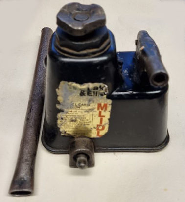 Lake & Elliot 1 Ton BlackJack ML1DL Description 1 ton jack. Single ram with a manual screw extension. The jack is 5.25" high retracted; 8.60" with piston extended and 11.75" fully extended with the manual screw. Second and third photos plus all other detail courtesy of Ian Hey. Applicable Vehicles: Not Known. Example in last 2 photos bought in automobile supplies shop. Jack Handle Type: 10" long tube 0.75" diameter and 0.06" thickness. Partially flattened at one end to enable engagement of the pressure release tap. Year Dates Noted: 1972 Value: