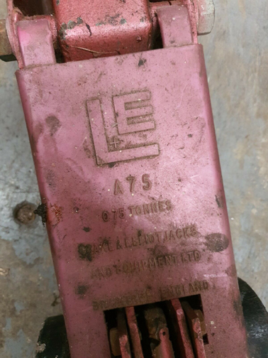 Lake & Elliot A75 Trolley Jack Description The jack cover says L+E A75 0.75 TONNES LAKE & ELLIOT JACKS AND EQUIPMENT LTD BRAINTREE ENGLAND. Only other details as shown in the photo. Applicable Vehicles: Garage jack Jack Handle Type: Detachable Year Dates Noted: