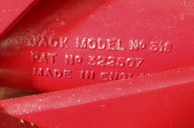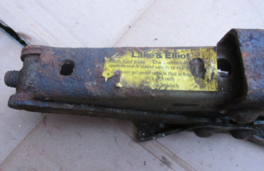 Lake & Elliot 319 Trolley Jack Description The 319 is a 1 ton hydraulic twin pump trolley jack. It is approximately 48" long and raises to 36". The casting is LAKE & ELLIOT BRAINTREE ESSEX and JACK MODEL No. 319 PAT No. 322507 MADE IN ENGLAND. The first 3 photos show the jack prior to and during restoration. The remaining photos show the excellent work by Mike Byrne - his photos and detail. Applicable Vehicles: Garage jack Jack Handle Type: Integrated with a brass plaque detailing operating procedures. Year Dates Noted: