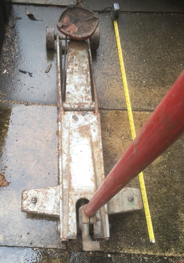 Description The A4 trolley jack has a 4 ton lift capacity. It has the same design as the A1.5 above. Closed height is 5.25". Extended height is 20". Overall length is 33.5" and width is 13.5". The detachable handle is 40.5". Applicable Vehicles: Garage jack. Jack Handle Type: Detachable, 40.5". Year Dates Noted: