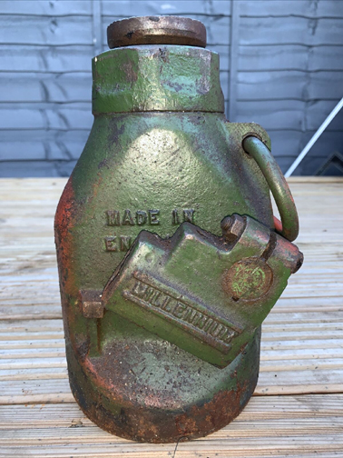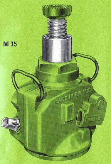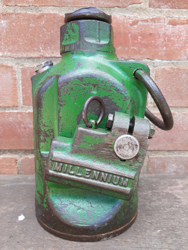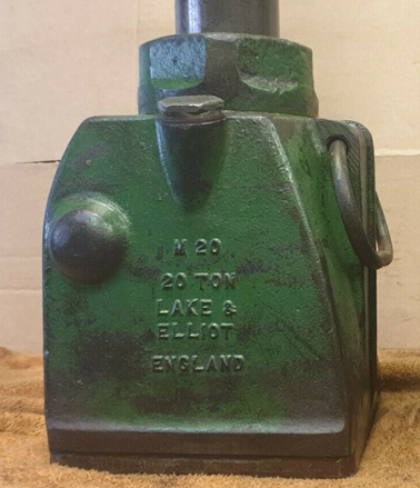 Lake & Elliot Millennium M35 Description 35 ton jack for the heavy civil engineering jobs. Single ram, single pump hydraulic jack with a single manual screw extension. It measures 10" closed with a 6.25" lift and a 3.75" screw extension. Extended height is 20". It weighs 82.5lbs. Cast MADE IN ENGLAND on one side; MILLENNIUM on the jack hand socket; and M35 35 TON LAKE & ELLIOT ENGLAND on the other. Applicable Vehicles: Not Known Jack Handle Type: 36" bar. Final photo Year Dates Noted: