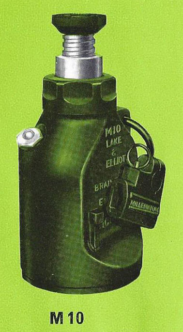Lake & Elliot Millennium M10 Description The M10 is a 10 ton commercial vehicle jack. Single ram, single pump hydraulic jack with a single manual screw extension. It measures 10 1/8" closed with a 7" lift and a 5 1/8" screw extension. Extended height is 22.25". It weighs 38.75lbs. Unlike the schematic it is cast MADE IN ENGLAND on the handle side with MILLENNIUM on the handle. The other side is cast LAKE & ELLIOT LTD 10 TON M10. See also the S829 which is the same jack. Applicable Vehicles: Not Known Jack Handle Type: 36" bar. Year Dates Noted: