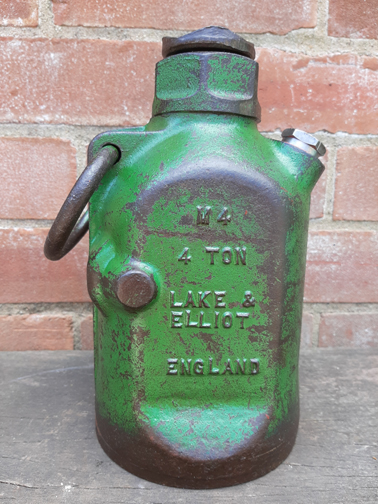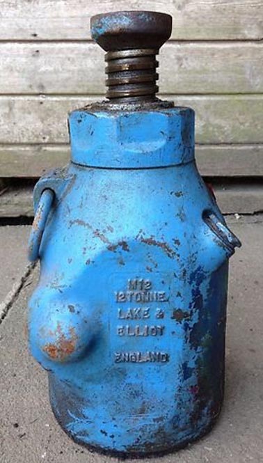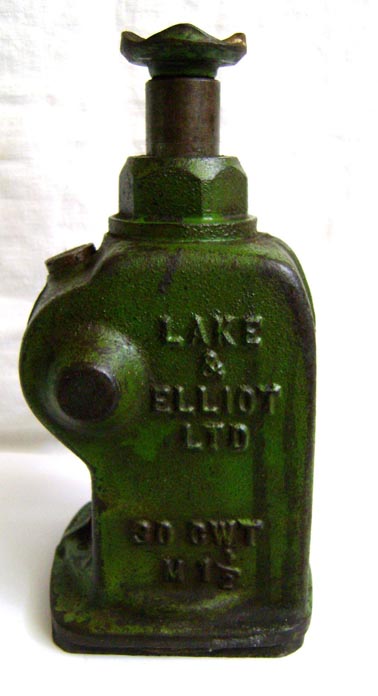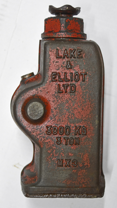 Lake & Elliot Millennium M4 Description 4 ton, commercial vehicle jack. Single ram, single pump hydraulic jack with a single manual screw extension. It measures 9.25" closed with a 6.5" lift and a 5.4" screw extension. Extended height is 21 1/8". It weighs 23.75lbs. Cast M4 4 TON LAKE & ELLIOT ENGLAND. Photos courtesy of Andrew Powers. Applicable Vehicles: Not Known Jack Handle Type: 36" rod. Year Dates Noted: