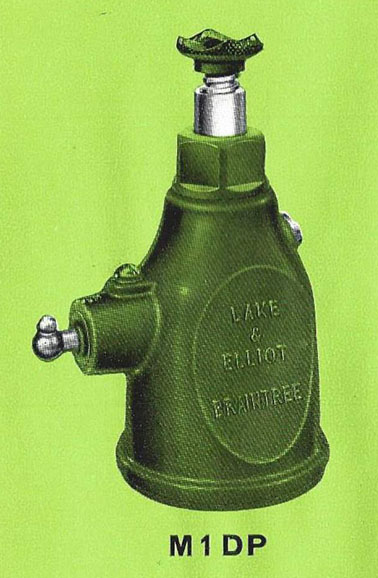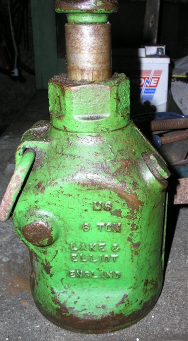 Lake & Elliot Millennium M5.5 DL Description This is an unusual M series jack having no model number markings on the central body. All the detail is stamped on top of the piston retaining nut. The body is cast LAKE & ELLIOT ENGLAND. The top nut is stamped M5 1/2 DL, 5 1/2 TON, 13025. It is a double ram, single pump hydraulic jack with a single manual screw extension. Pictures courtesy John Stanton. I have seen this sort of marking practice on military contract jacks. Applicable Vehicles: Not Known Jack Handle Type: 36" bar. Year Dates Noted: