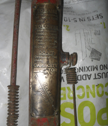 Description 3 ton jack. Single ram with a single manual screw extension. Label states ML3 3 TON. No other details. Applicable Vehicles: Not Known Jack Handle Type: probably Two tubular bars as shown in entry above. Year Dates Noted: