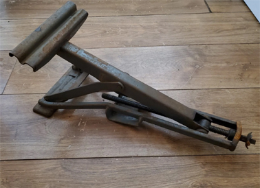 Metallifacture Central Foot Cantilever - Austin/Morris? Description Very rare cantilever jack with the central foot and attached handle that I have only previously seen for the early E-Type Jaguar (first entry above). However, this version is in original red paint typical of Austin/Morris of the period and has the Mini style jacking point. This type of jack was superceded in 1967 with a detachable handled version. The traditional Mini cantilever jack did not have the mid point foot. See Mini below. Any information on vehicle type most welcome.