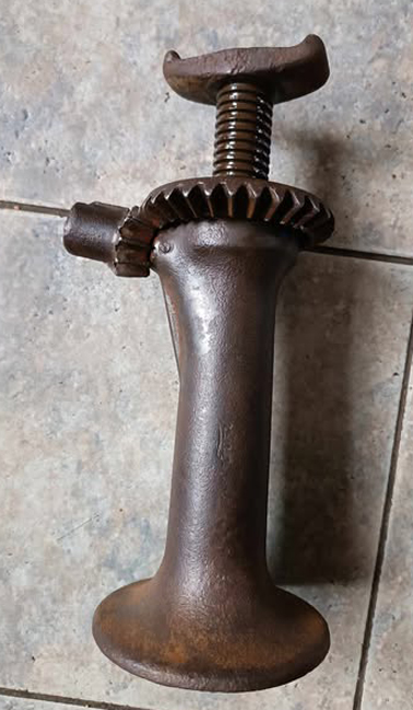 Description Single screw jack with similarities to the 17/!b above. This one is stamped 17/1C on the neck and cast FORD above the 2 vertical slots, unlike the one above where the casting is between them. It measures 12" closed and 18" fully extended. This one also has a hinged extension. Only other detail as shown in the photos. Applicable Vehicles: Claimed to be for a Model T. Confirmation required. Jack Handle Type: Similar the jack above. Year Dates Noted: