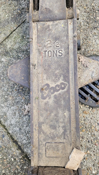 Description: The jack is cast EPCO No.10. It has a 2.5 Ton lifting capacity and has a maximum lift to 19.5". Only other details as shown in the photos. Applicable Vehicles: Garage trolley jack. Jack Handle Type: Integrated. Year Dates Noted: